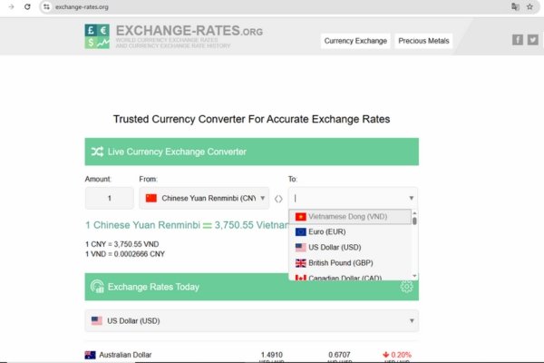 Cách 1: Sử dụng trang web quy đổi tiền tệ