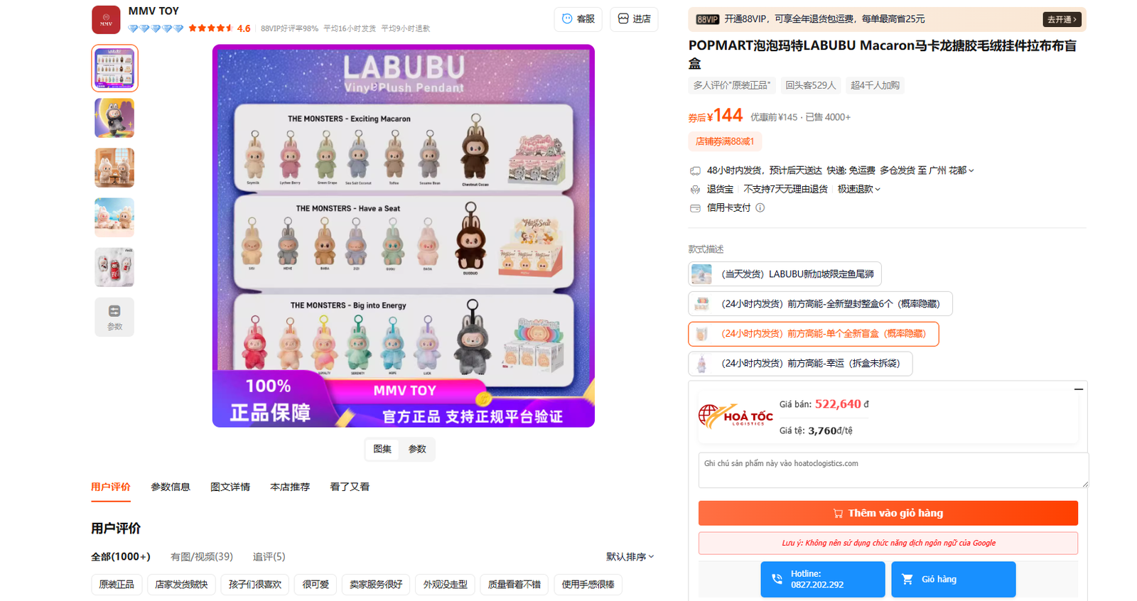 Vậy là chúng ta đã cài đặt xong công cụ đặt hàng của Hoả Tốc Logistics. Để xem công cụ có hoạt động hiểu qua hay không , các bạn truy cập vào các trang TMDT Trung Quốc như taobao , tmall và 1688 , chọn mua 1 sản phẩm bất kỳ. Nếu xuất hiện thanh công cụ bên dưới và số tiền tệ đã được quy đổi ra tiền VND , như vậy là công cụ hoạt động bình thường