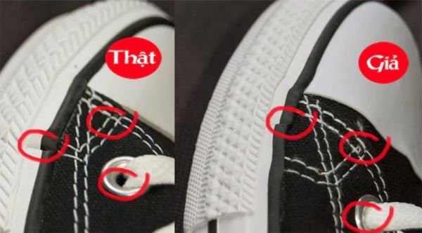 - Sự thông thoáng: Các lỗ thoát khí trên giày thật được đục chính xác, giúp lưu thông không khí. Giày giả thường chỉ làm các lỗ giả (không xuyên thấu) hoặc dùng vải bí bách, khiến chân bị nóng và đổ mồ hôi sau vài phút di chuyển.