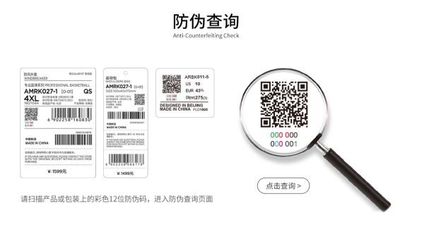 Đây là phương pháp kiểm tra nguồn gốc sản phẩm có độ tin cậy cao nhất được Li-Ning cung cấp. Mỗi sản phẩm chính hãng khi xuất xưởng đều đi kèm với một mã chống hàng giả Li-Ning riêng biệt.