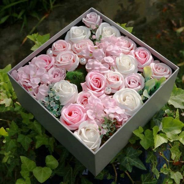 - Hoa cẩm tú cầu sáp: Dùng để phối cùng hoa hồng hoặc làm điểm nhấn cho các hộp quà lớn.